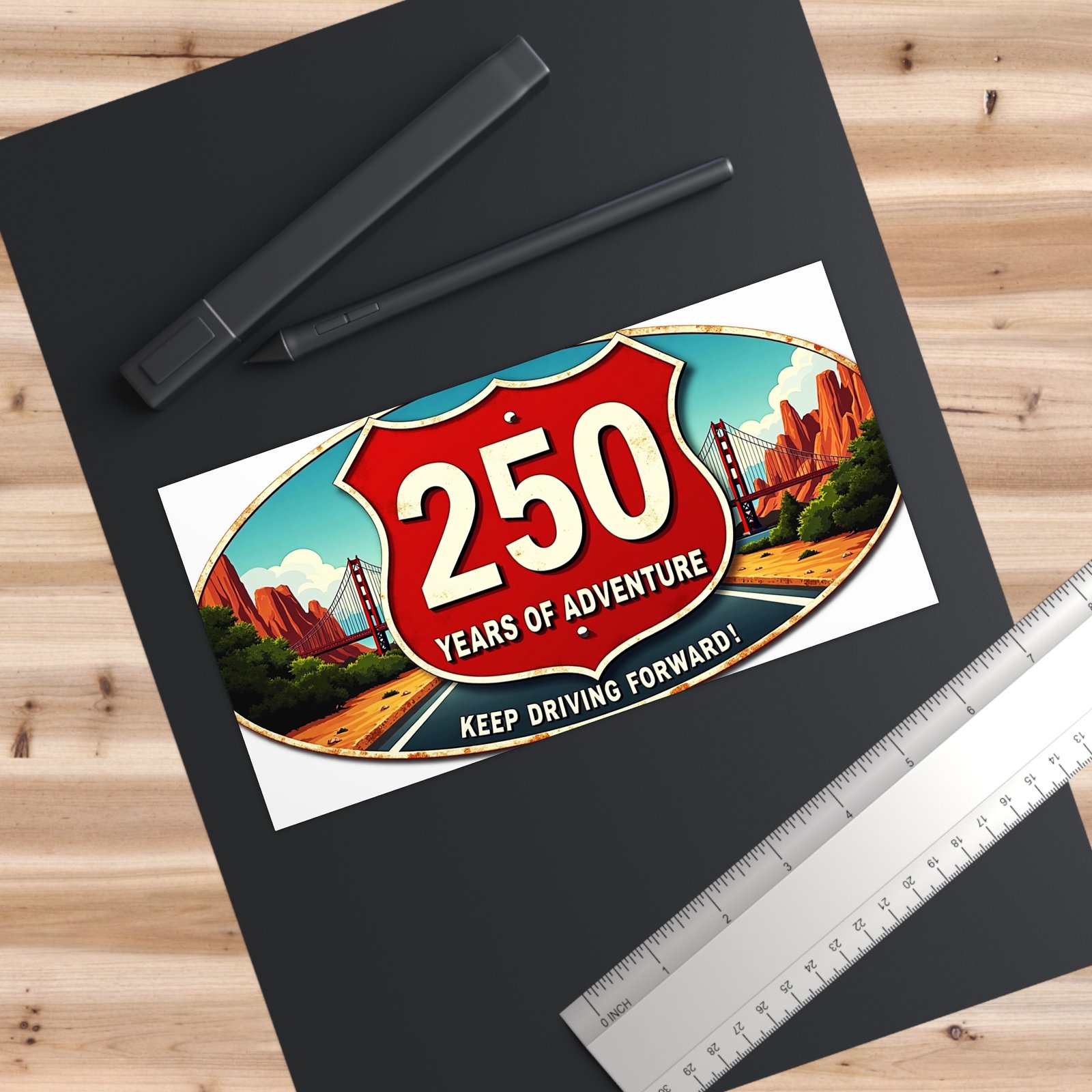 Adventure-Themed Bumper Stickers Celebrating 250 Years of American Adventure. These vibrant and durable bumper stickers are perfect for outdoor enthusiasts and history buffs. Ideal for those looking to add a touch of Americana to their car, laptop, or water bottle. Perfect for Fourth of July celebrations, road trips, and national park visits.