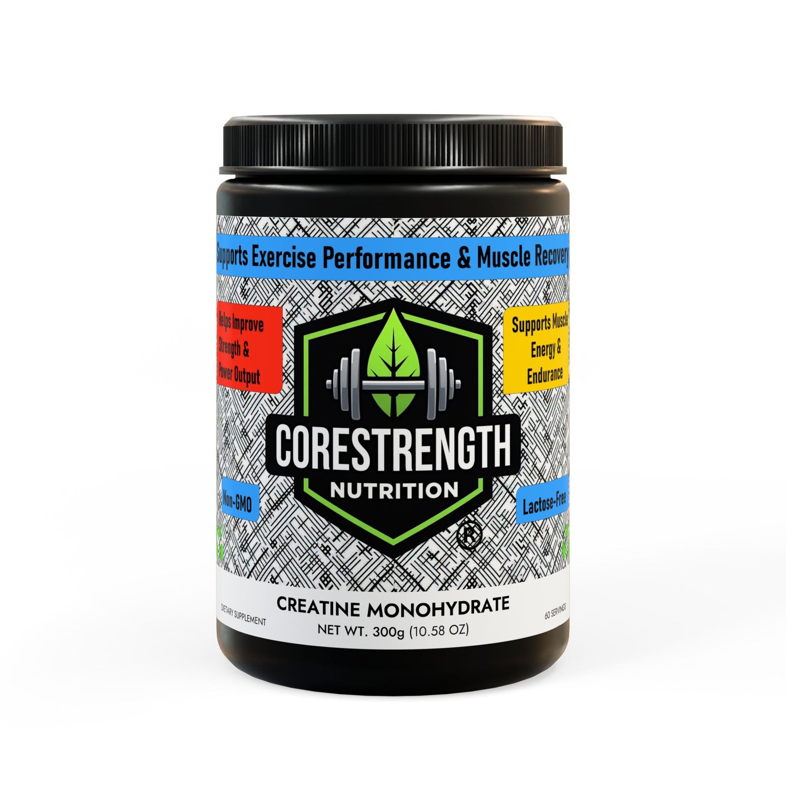 Each container provides 300g (10.58 oz) of high-quality creatine monohydrate powder for consistent daily supplementation.