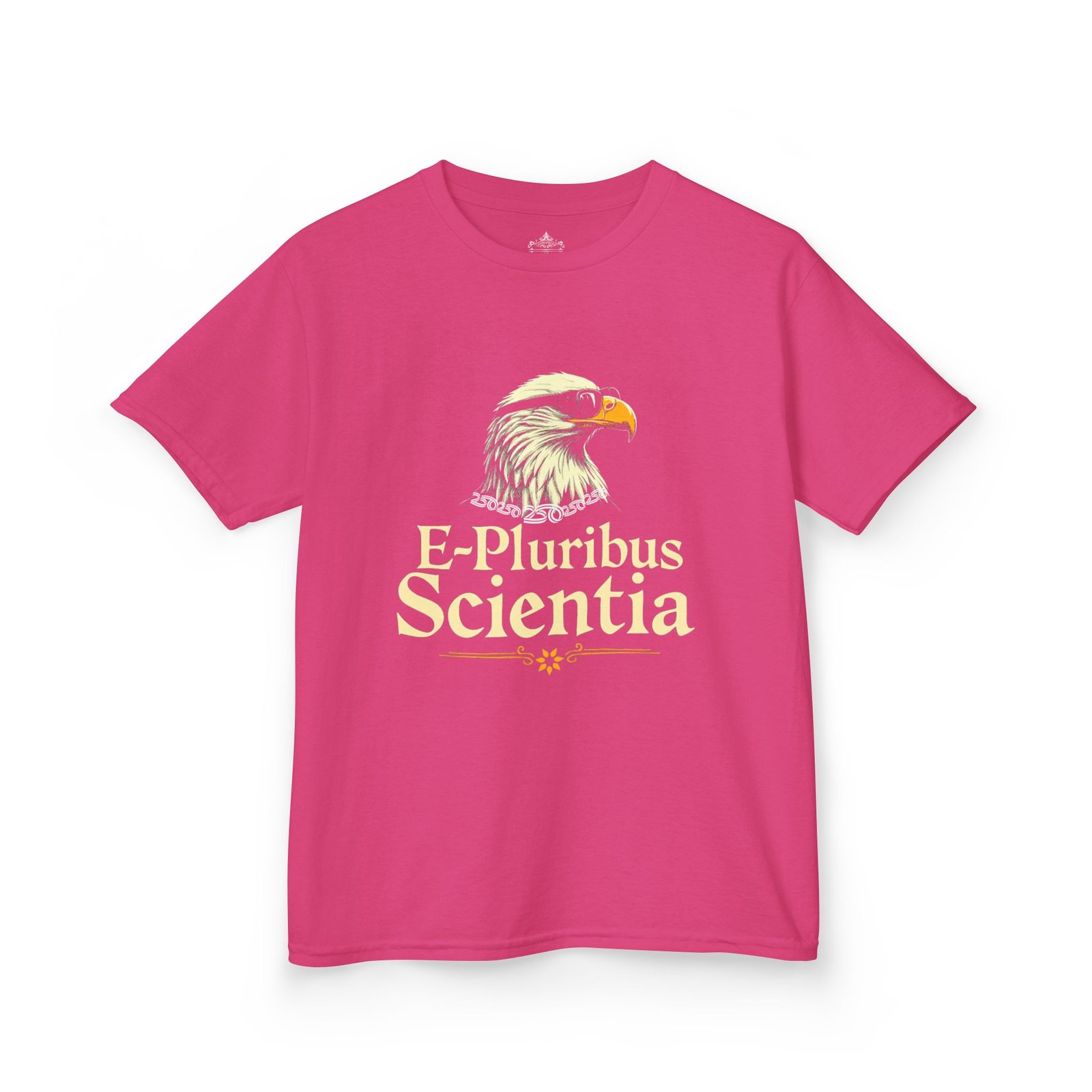 Inspire curiosity and pride with the Kids Eagle Graphic Tee – E Pluribus Scientia! Featuring a bold eagle illustration and the Latin phrase “E Pluribus Scientia” (Out of Many, Knowledge), this youth t-shirt blends patriotic style with an educational twist. Perfect for school history projects, America 250 celebrations, Independence Day events, or everyday wear, this shirt encourages kids to embrace both their heritage and a love of learning.