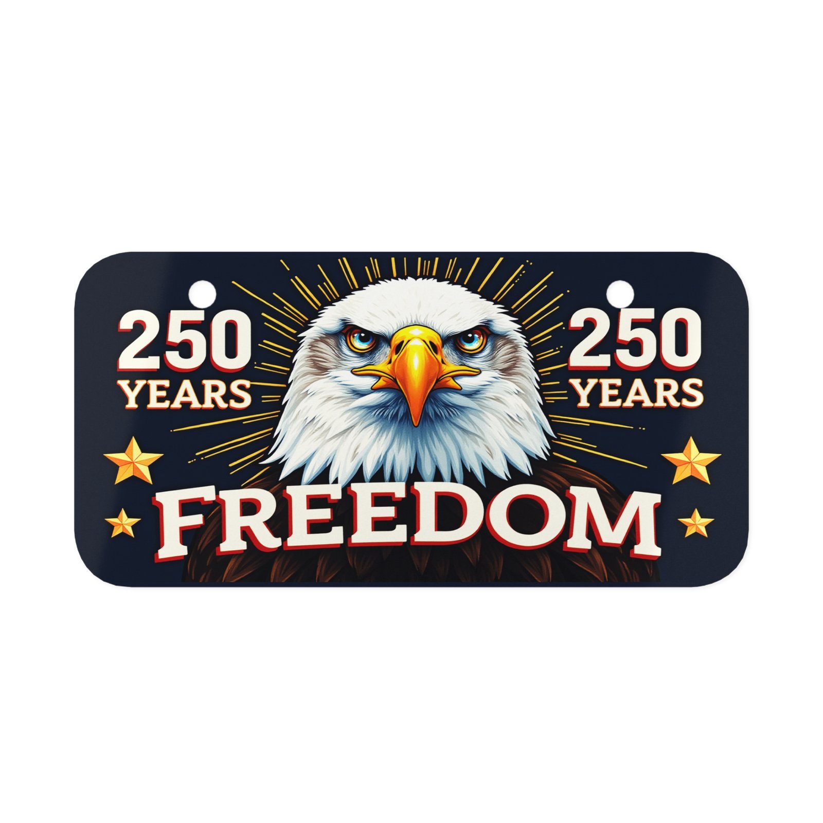 This 250 Freedom American Eagle Plate is a vibrant and durable aluminum plate that can be customized for your bicycle, motorcycle, or garden house wall. The glossy finish and colorful design make it a perfect fit for patriotic holidays and enthusiasts. It is lightweight and comes with pre-drilled holes for easy installation.