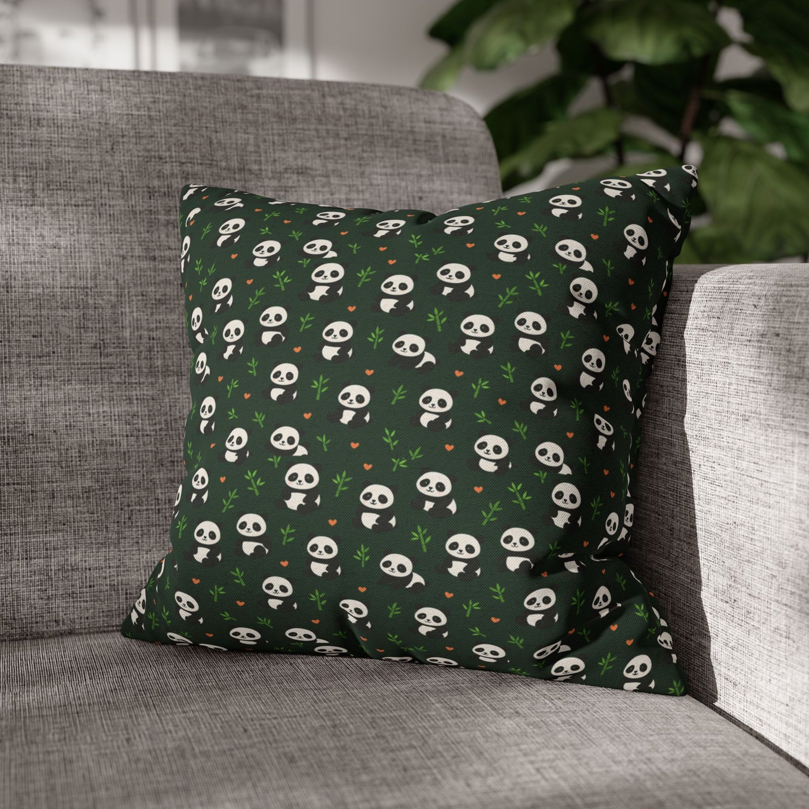 Bring a quiet, cozy charm to your living space with this square pillowcase adorned in a soft panda pattern. The print wraps both sides, so it reads beautifully from any angle on a couch, nursery rocker, or floor cushion. The spun polyester fabric stays smooth and wrinkle-free, keeping the panda motif crisp without ironing. A concealed beige zipper with a metal head keeps the cover looking seamless while making it easy to remove for cleaning. Swap it over an accent insert to add a gentle, whimsical presence to storytime corners, minimalist bedrooms, or casual sitting areas.