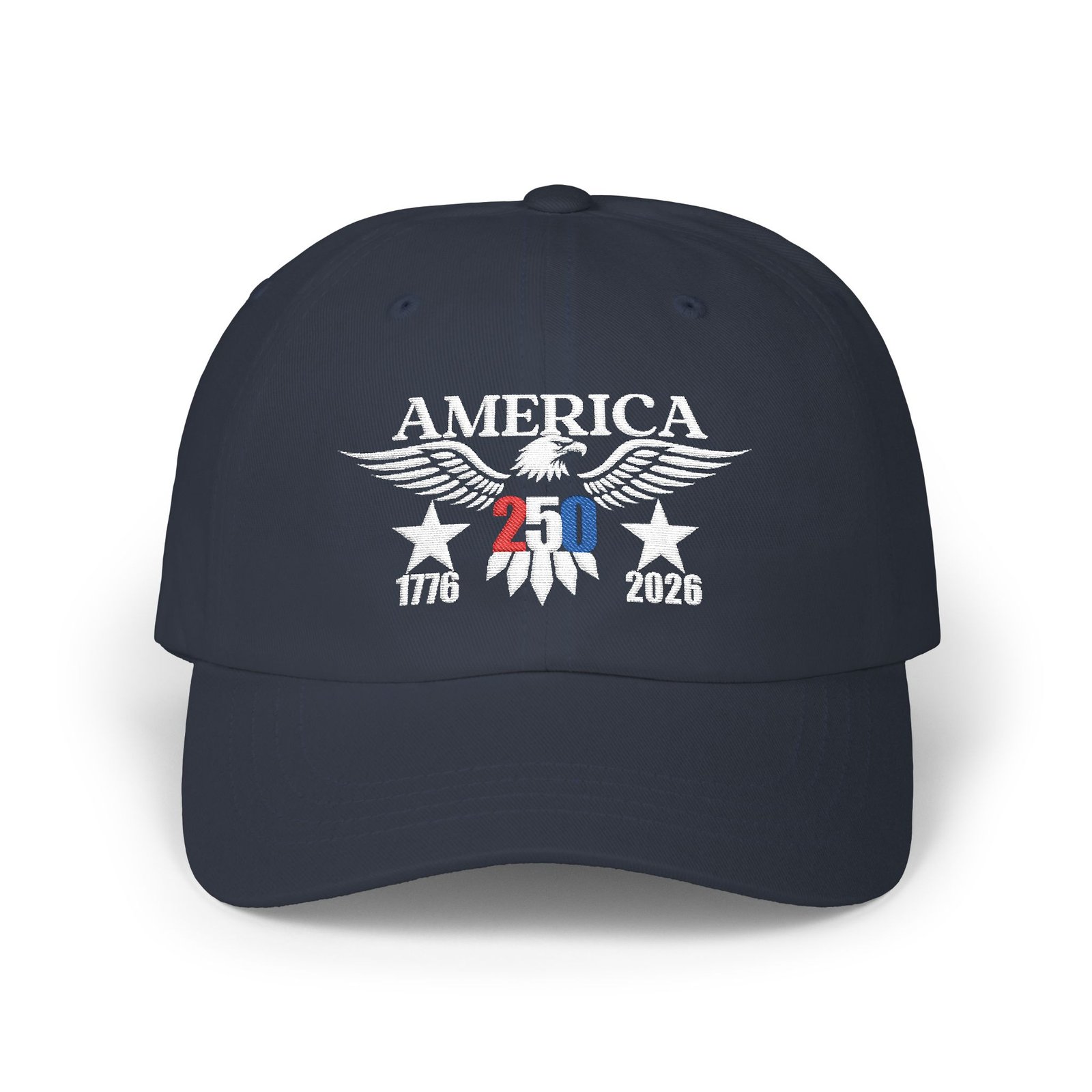 This patriotic Dad Cap is the perfect accessory for celebrating American milestones like the 250th Anniversary. With a comfortable fit and adjustable snap closure, it is ideal for adults looking to add a touch of patriotism to their everyday style. Great for Fourth of July celebrations, Memorial Day, or any patriotic event.