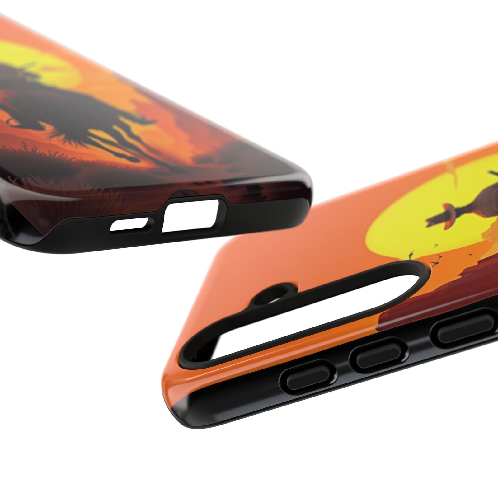 Introducing a stunning protective phone case that merges both style and functionality. This phone case radiates a sense of adventure, evoking the spirit of the wild west with its vibrant imagery of a rider against a striking sunset. Perfect for those who appreciate bold aesthetics and seek to express their individuality. This phone case is designed for adults who are passionate about their devices and the stories they tell through their accessories. It’s an ideal gift for occasions such as birthdays, holidays, or simply as a treat for yourself. Whether you’re exploring the outdoors or navigating daily life, this phone case combines rugged durability with an eye-catching design, fitting seamlessly into your lifestyle.