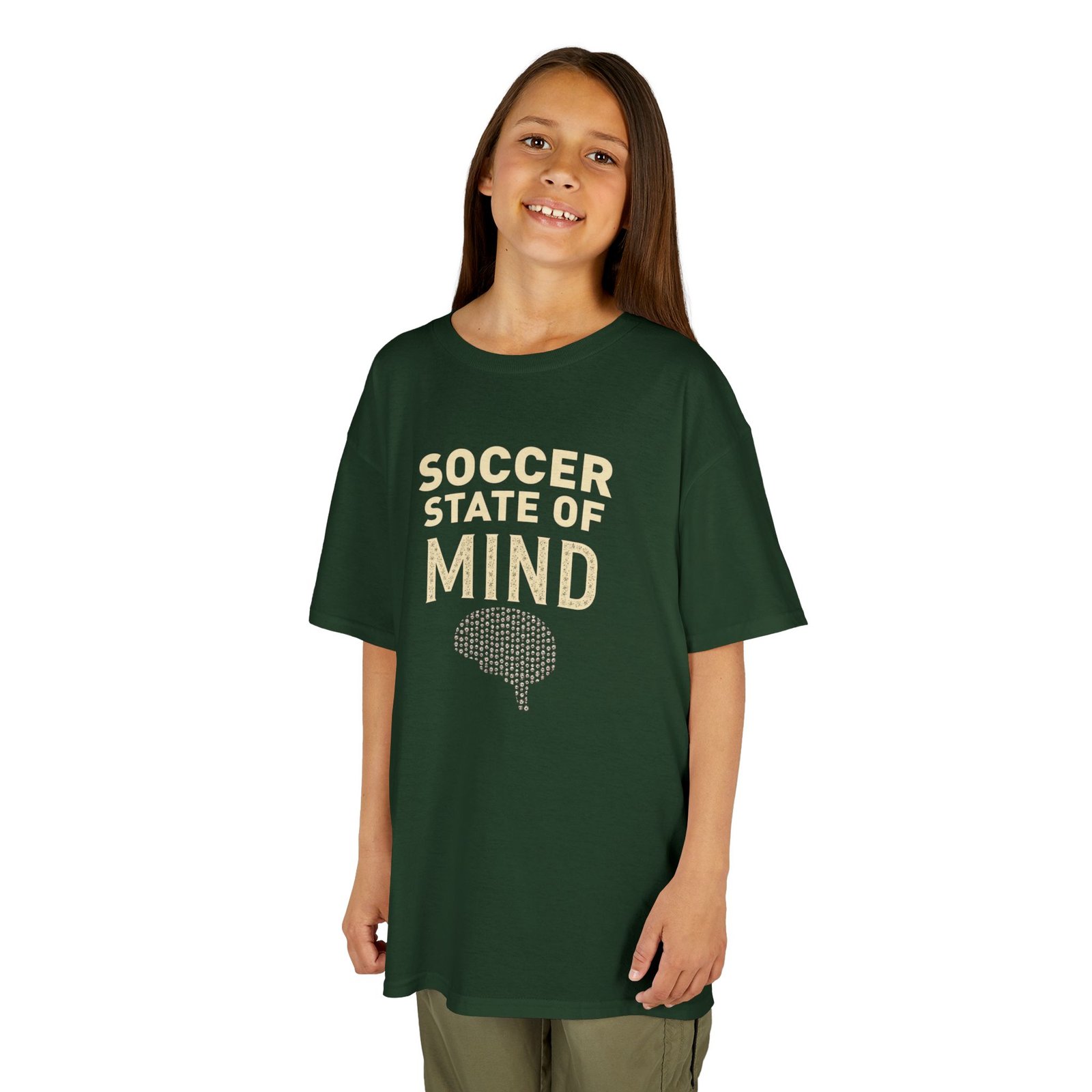 This Soccer State of Mind Tee is perfect for young soccer enthusiasts who want to showcase their love for the sport. The vibrant design gives off a sporty and energetic vibe, making it a great addition to a young athlete’s wardrobe. Ideal for birthdays, sports events, soccer games, and everyday wear.