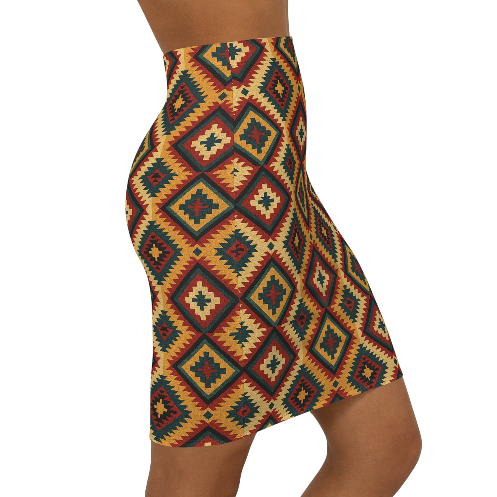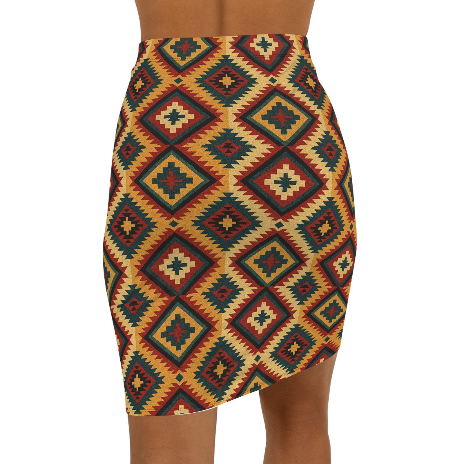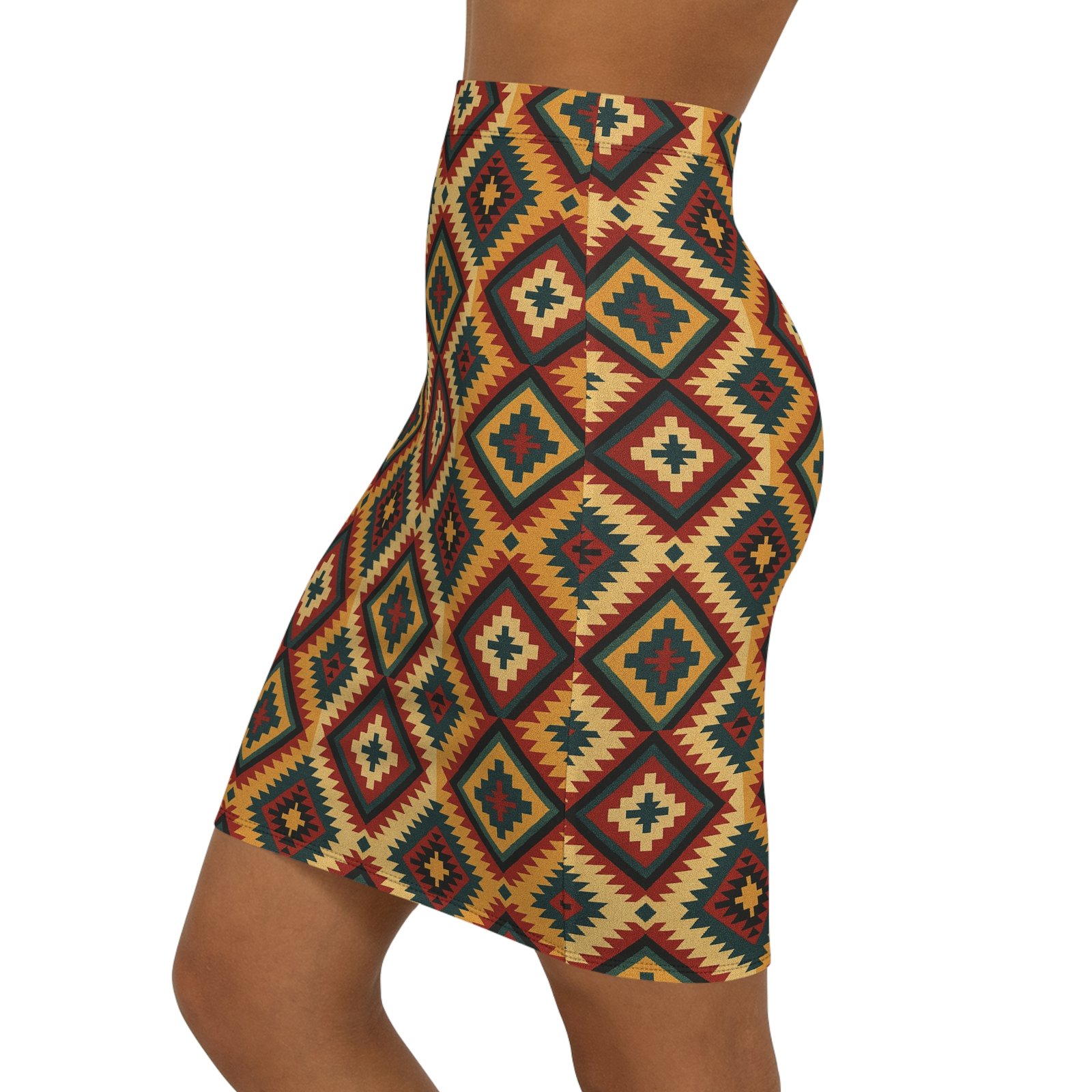 This Southwestern Diamond Pattern Skirt features a vibrant Aztec Geometric print, perfect for adding a unique flair to your wardrobe. The mid-waist slim fit and elastic waistband ensure a comfortable and flattering silhouette. Ideal for women looking to make a statement with their outfit, this skirt is great for casual wear or dressing up for special occasions.