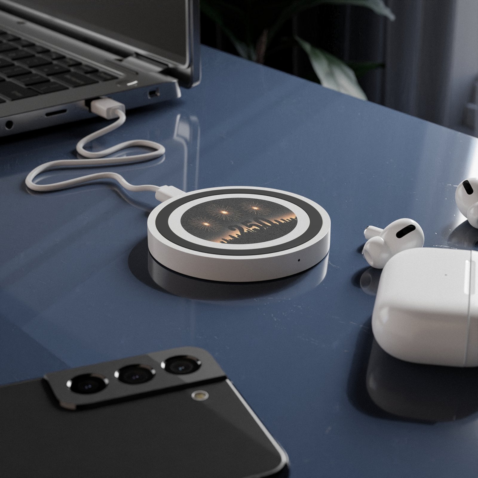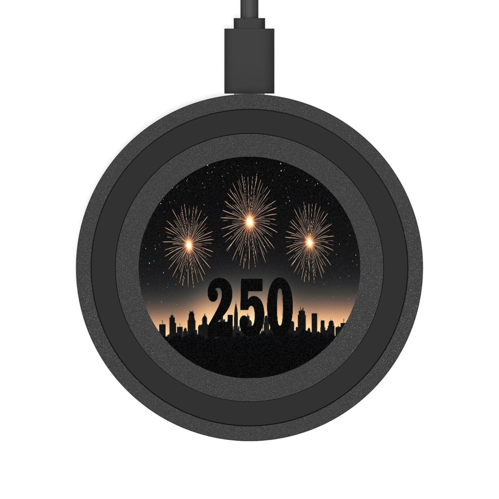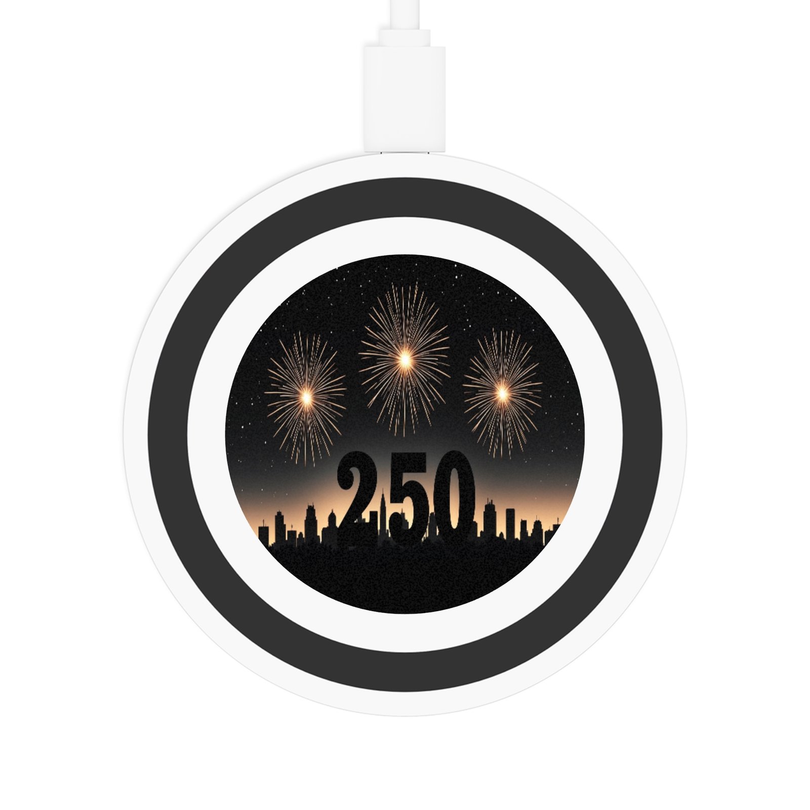 This America 250 city skyline Charging Pad features vibrant colors and a lightweight design, perfect for on-the-go use. It is compatible with a variety of smartphones and includes a USB cable for charging. Ideal for tech-savvy individuals looking to keep their devices charged effortlessly.