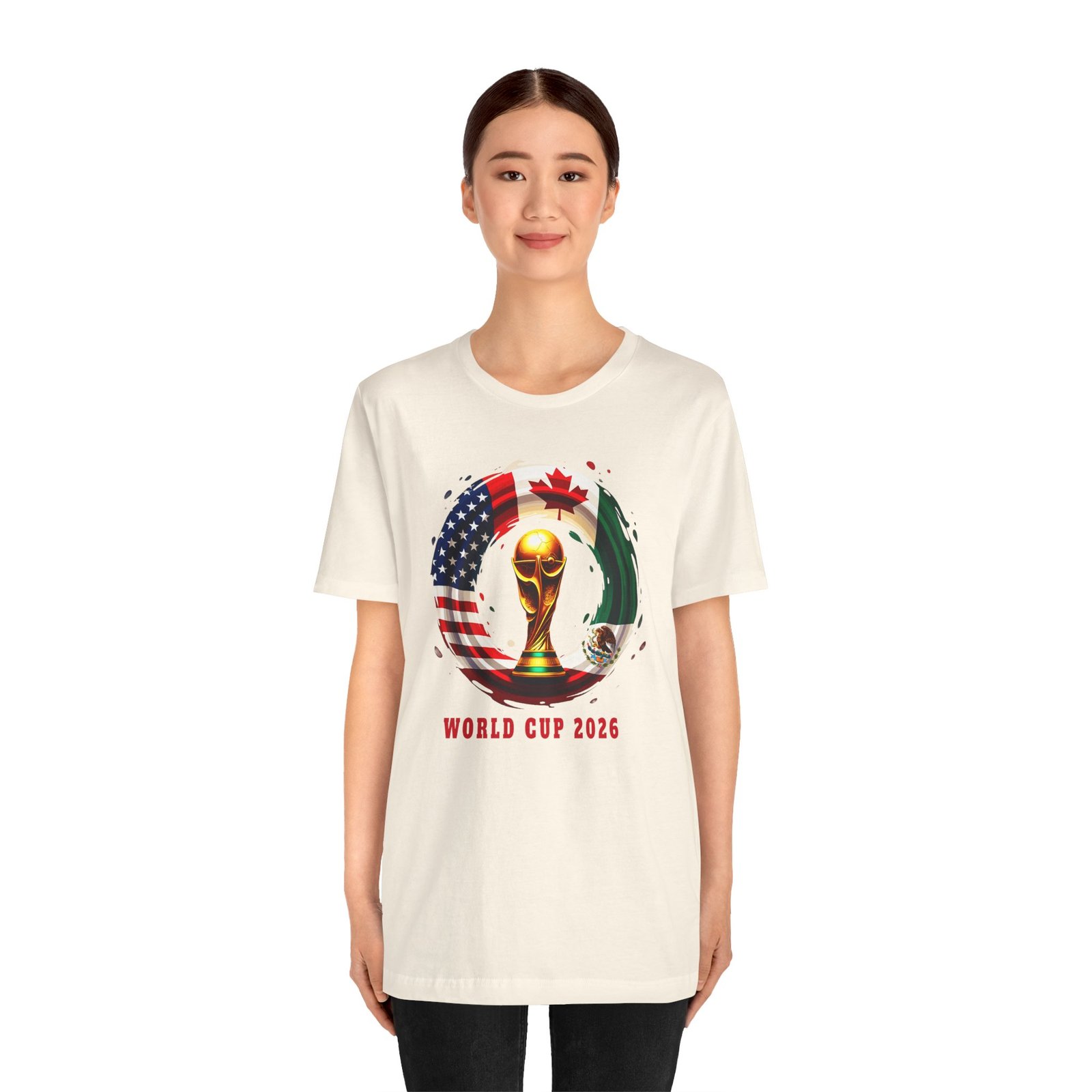 Celebrate the excitement of the World Cup 2026 with a lightweight tee that feels like game day every day. This breathable jersey shirt carries a crisp trophy design that sits cleanly on the chest and sleeves—printed with modern DTF/DTG techniques for sharp detail and vivid color. It wears like a favorite: soft Airlume combed cotton, a neat crew neckline, and a retail fit that layers well under jackets or stands alone when the match is on. Thoughtful construction—side seams for lasting shape, shoulder tape to prevent stretch, and a tear-away label for comfort—means it keeps its form and stays comfortable through cheering, travel, and post-match hangs. Ethically made and REACH certified, this tee brings tournament pride in a responsibly produced package that works for adult fans who appreciate quality, clean design, and lasting comfort.