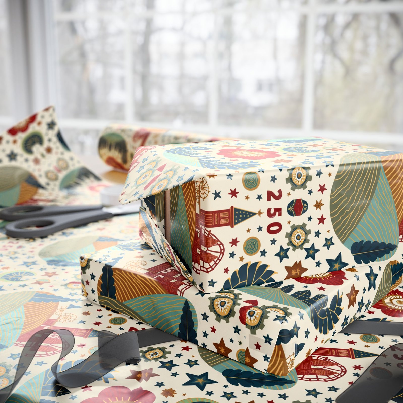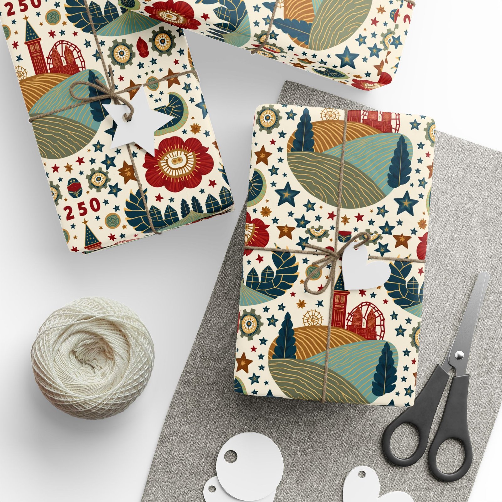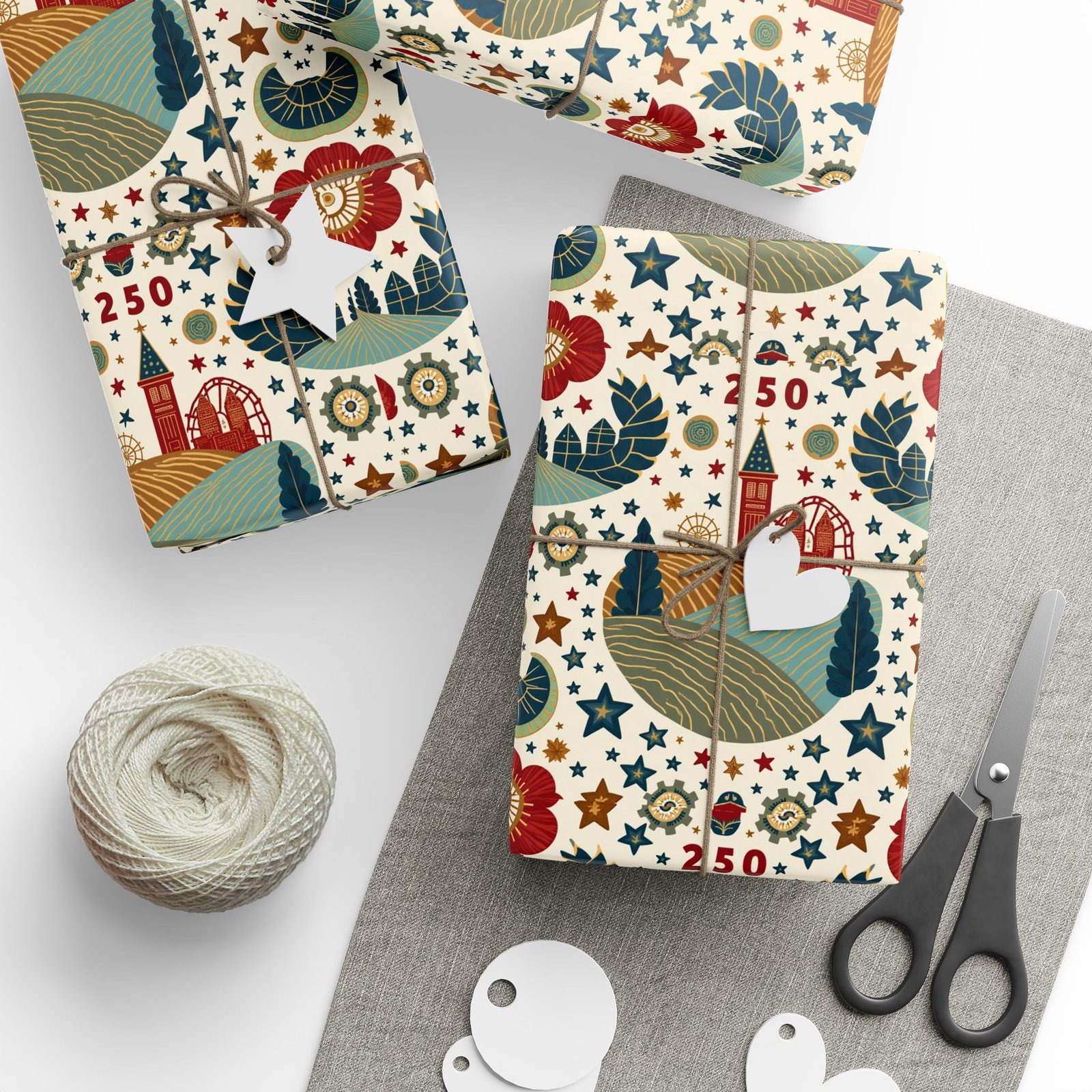 Celebrate America’s 250th anniversary with this patriotic wrapping paper. Perfect for gift-giving during Independence Day, Memorial Day, or Veterans Day. Ideal for those who love to add a festive touch to their presents.
